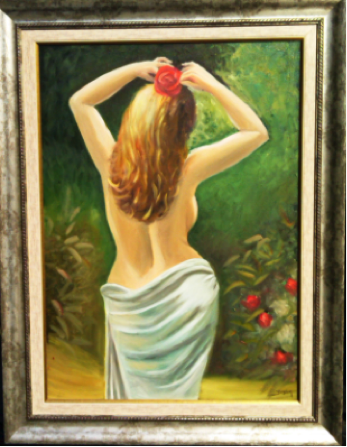 Bu resimle birlikte ten rengi, saçlar ve kumaş etkisini denemiş oldum. Ten rengi için sarılar, kırmızılar hatta yeşiller kullanacağım hiç aklıma gelmezdi. Hep hazır ten rengini doğrudan kullanabileceğimi düşünmüştüm. Işığın etkisini verdiğim an, resim başka bir boyut kazandı. Arka plandaki yeşil alanı çok belirgin yapmadım. Orijinal resim çok flu olduğu için çizerken biraz zorlansam da farklı bilgiler edindiğim için çok zevkli bir çalışma oldu.